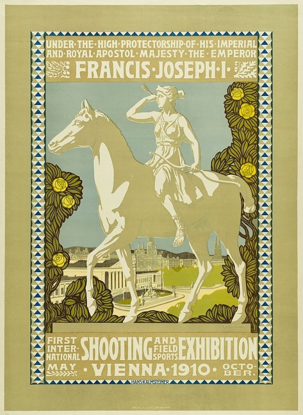 Hans Kalmsteiner beteiligte sich rege am Wiener Ausstellungsbetrieb, wobei er auch aktiv an der Gestaltung von repräsentativen Großausstellungen mitarbeitete. So etwa an der Jagdausstellung (1910), bei der er den dafür ausgeschriebenen Plakatwettbewerb für sich entscheiden konnte[4], und an der bereits genannten Adria-Ausstellung (1913).